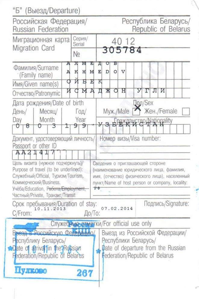 - migration card.